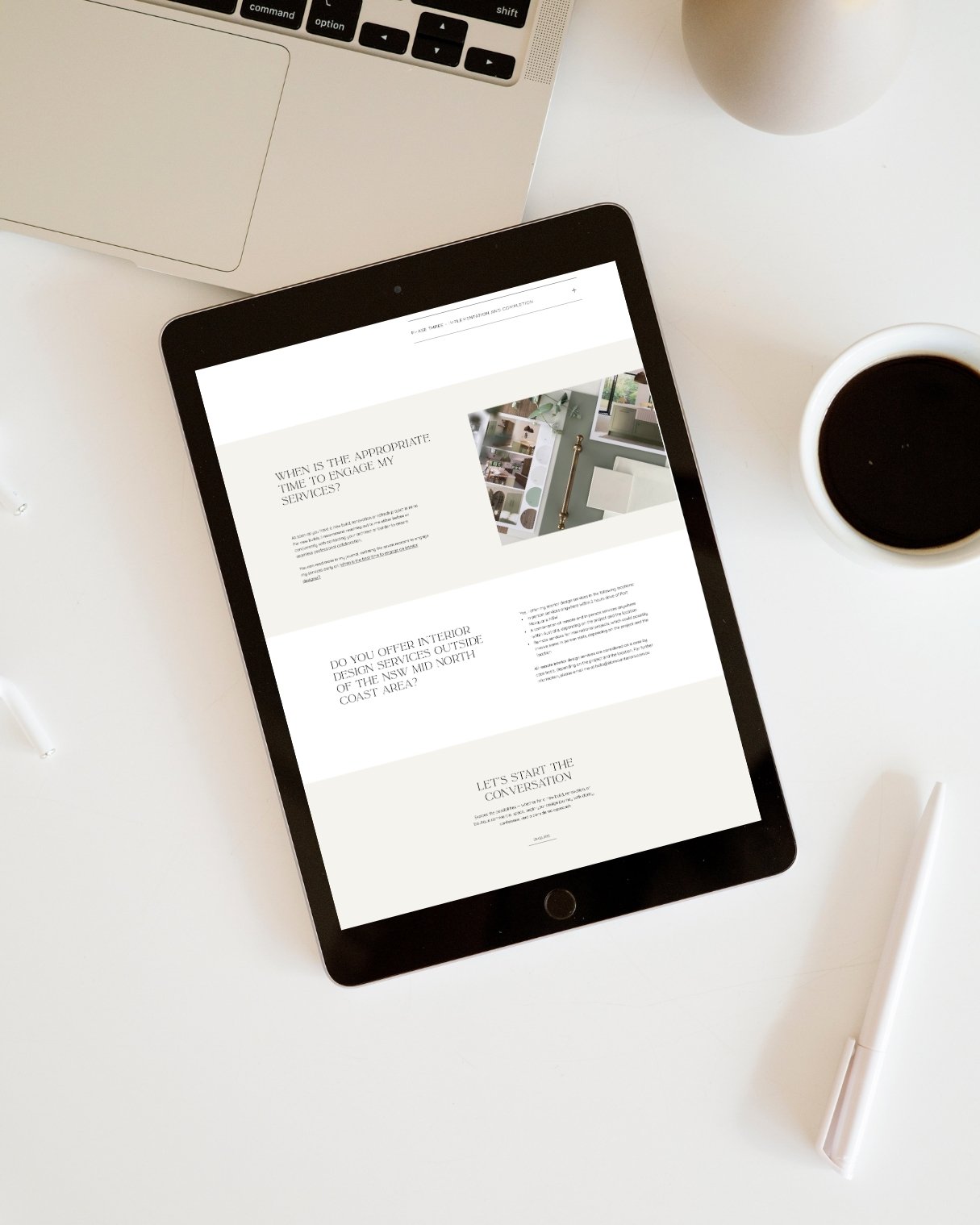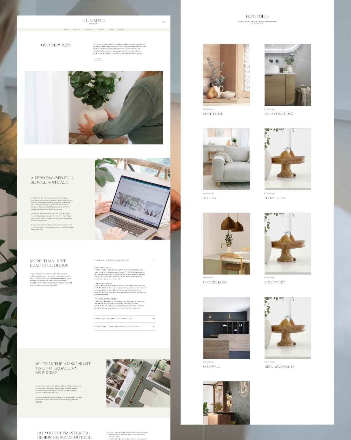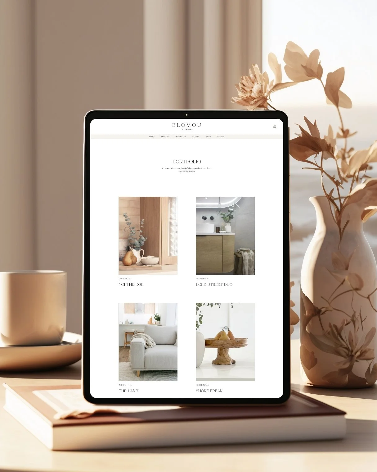 A refined and timeless website for Elomou Interiors, an interior design studio based in Port Macquarie. The design reflects the studio’s philosophy of balancing beauty with functionality, creating spaces that feel effortless yet deeply intentional. With a clean, elegant layout and carefully considered details, the website mirrors Elomou’s commitment to craftsmanship, comfort, and connection — making it easy for clients to explore services and envision their own elevated spaces.