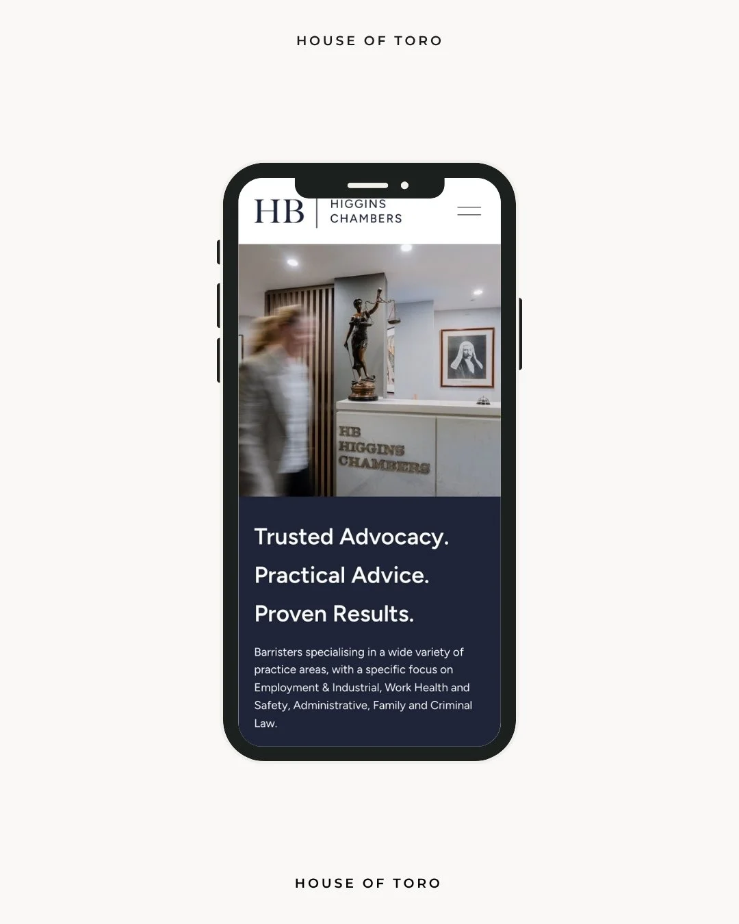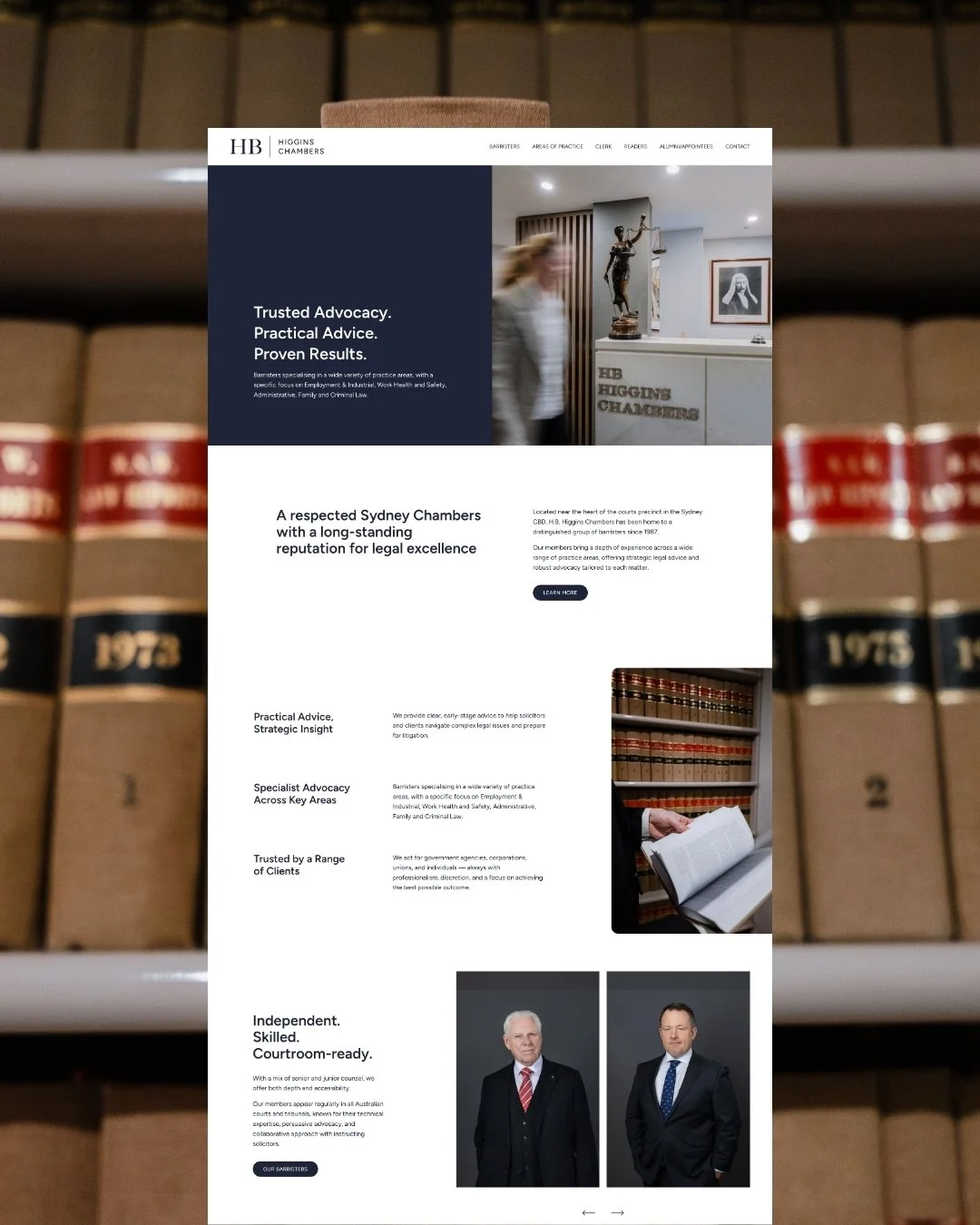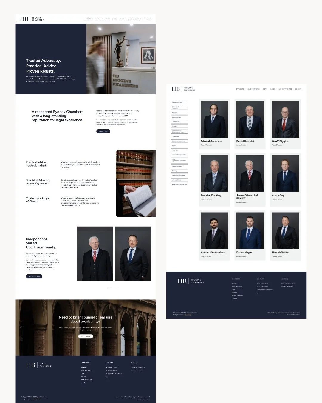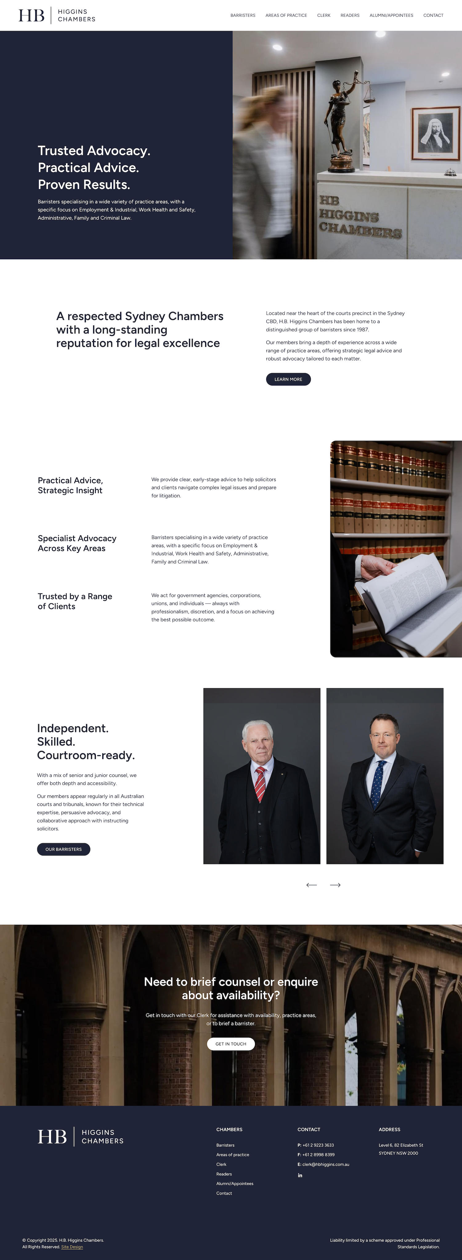 A clean, professional, and approachable website for HB Higgins Barrister Chambers, a Sydney-based legal practice specialising in Employment, Family, and Criminal Law. The website reflects the chambers’ expertise and client-first approach, providing clarity, ease of navigation, and a polished digital presence. Designed to build trust and confidence, the platform showcases their legal services while maintaining an accessible, professional tone.